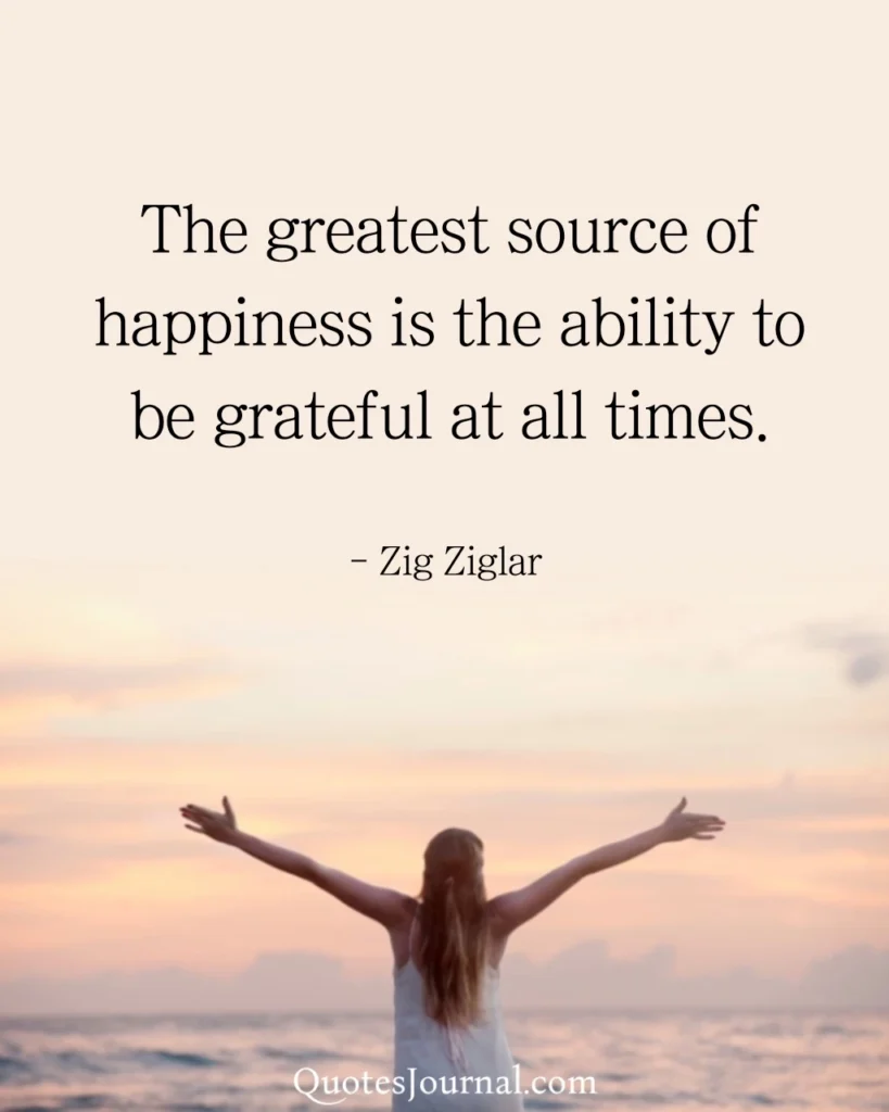 “The greatest source of happiness is the ability to be grateful at all times.”